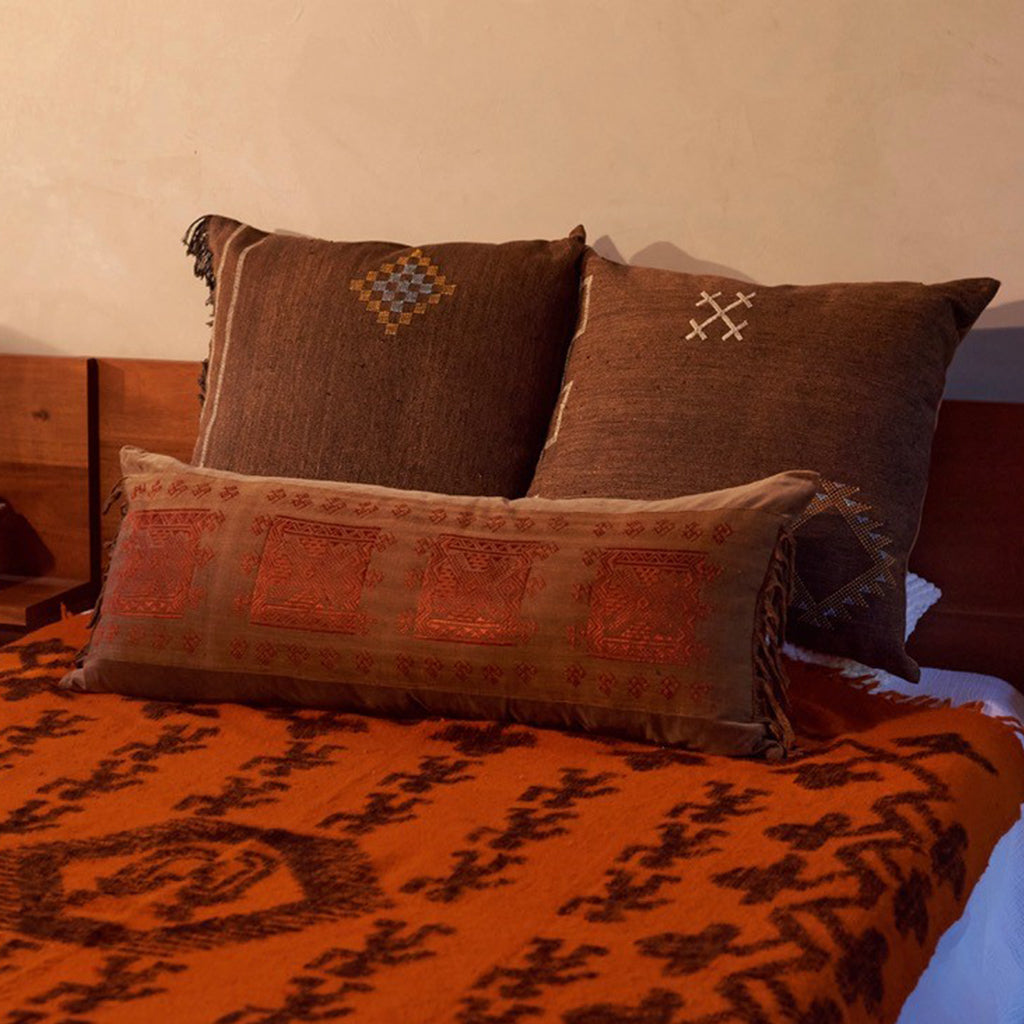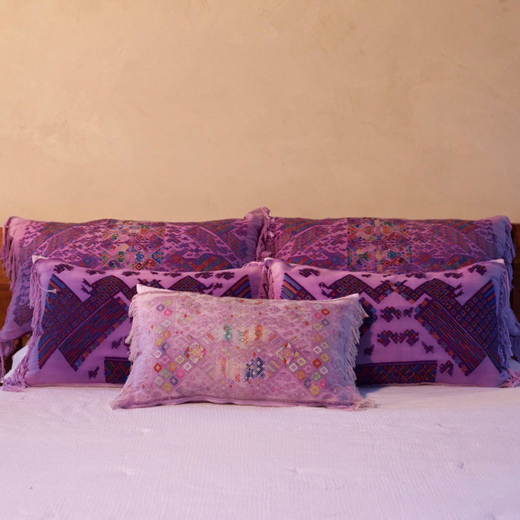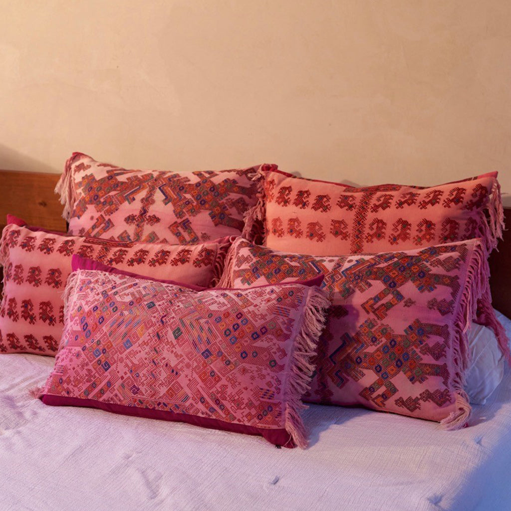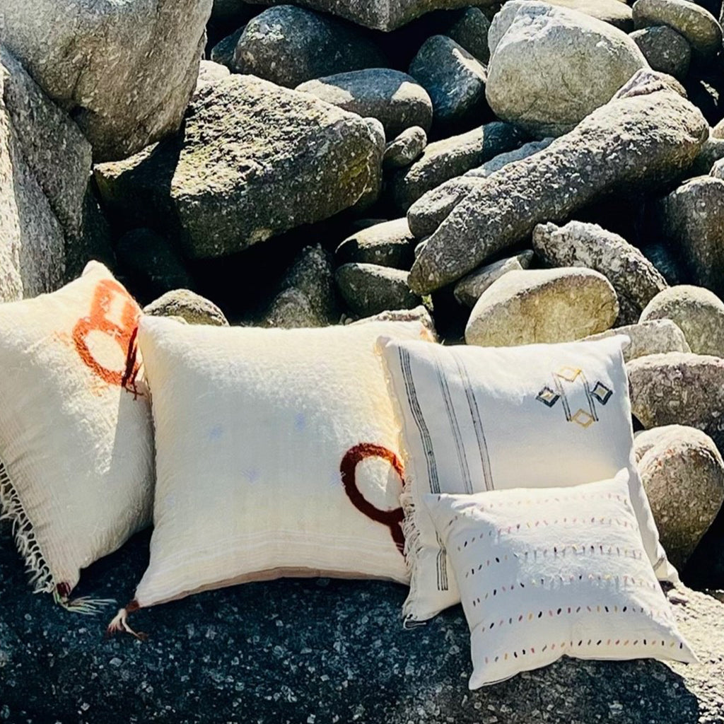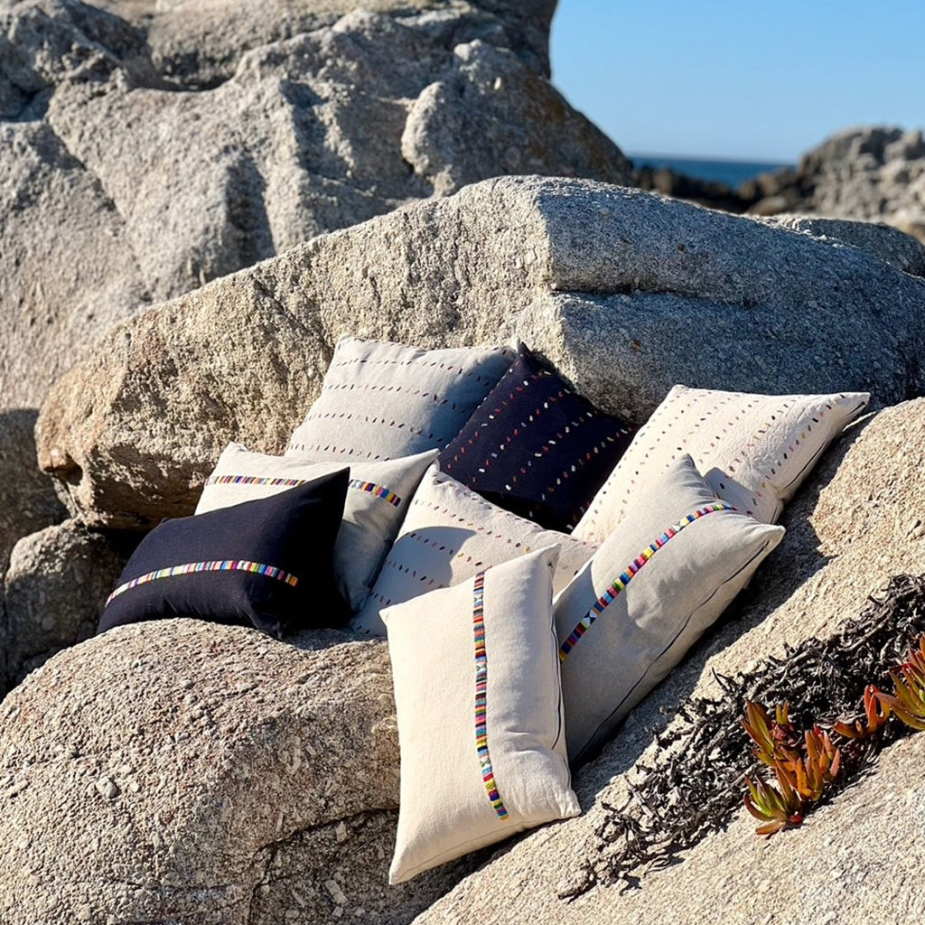 Au Fil Du Jour pillows are designed from ethically sourced fabrics from around the globe. Each pillow features handmade patterns and meticulous craft from regional artisans.