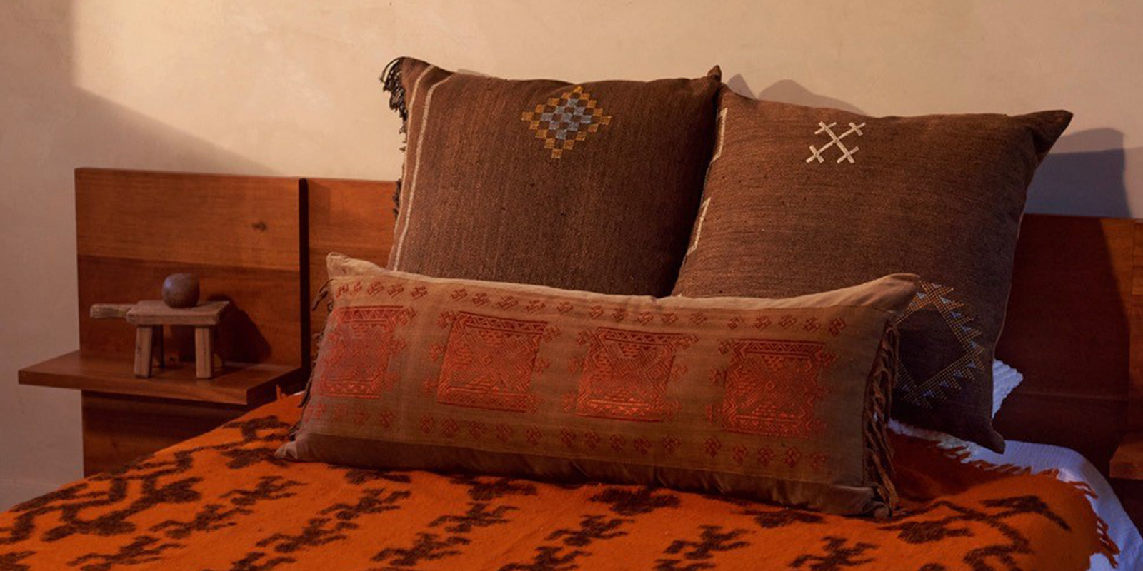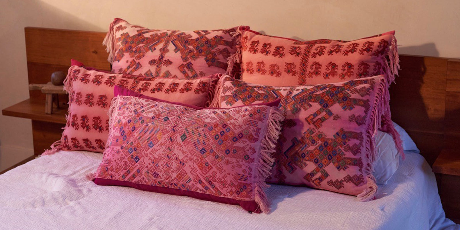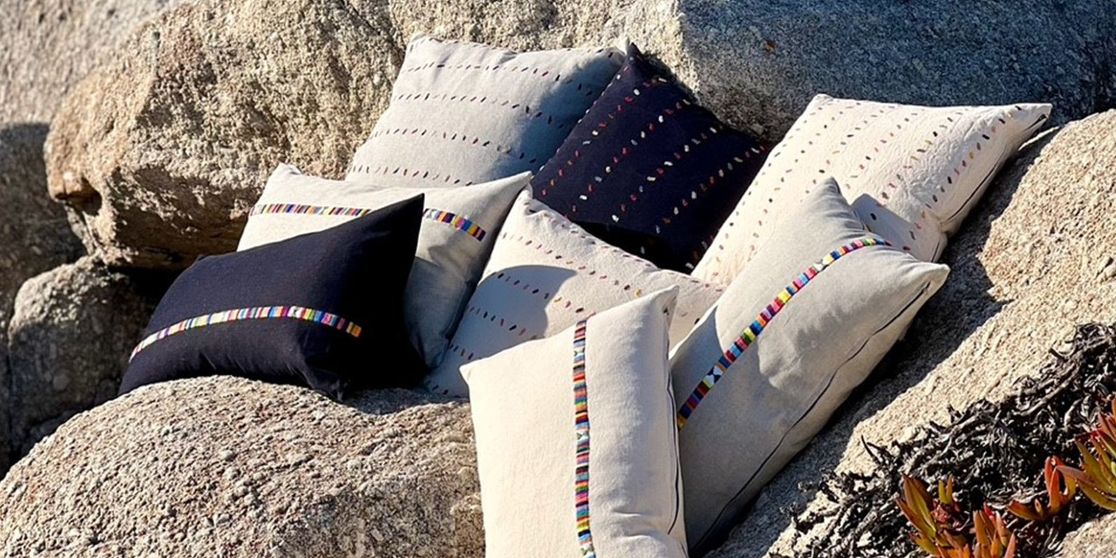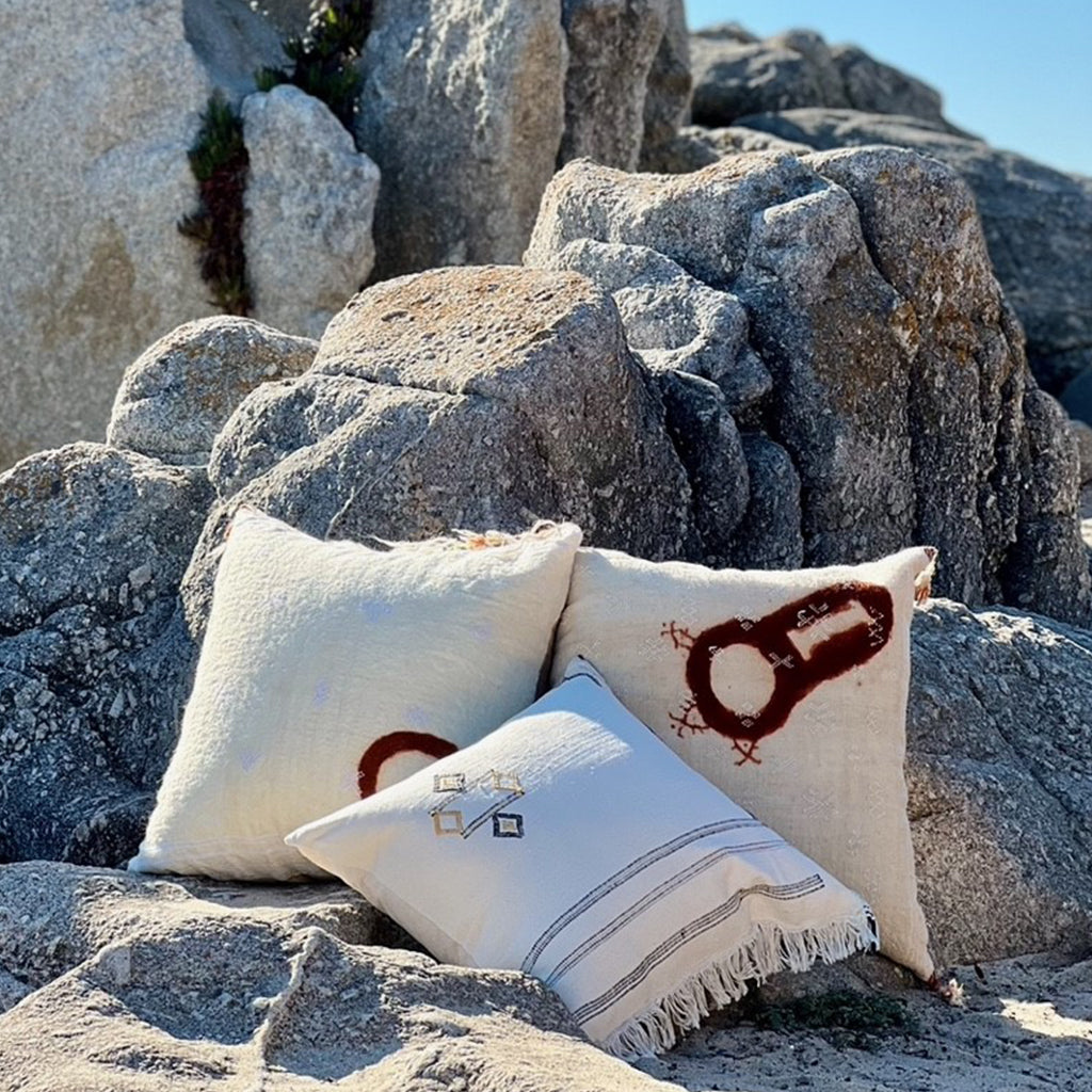 Au Fil Du Jour pillows are designed from ethically sourced fabrics from around the globe. Each pillow features handmade patterns and meticulous craft from regional artisans.
