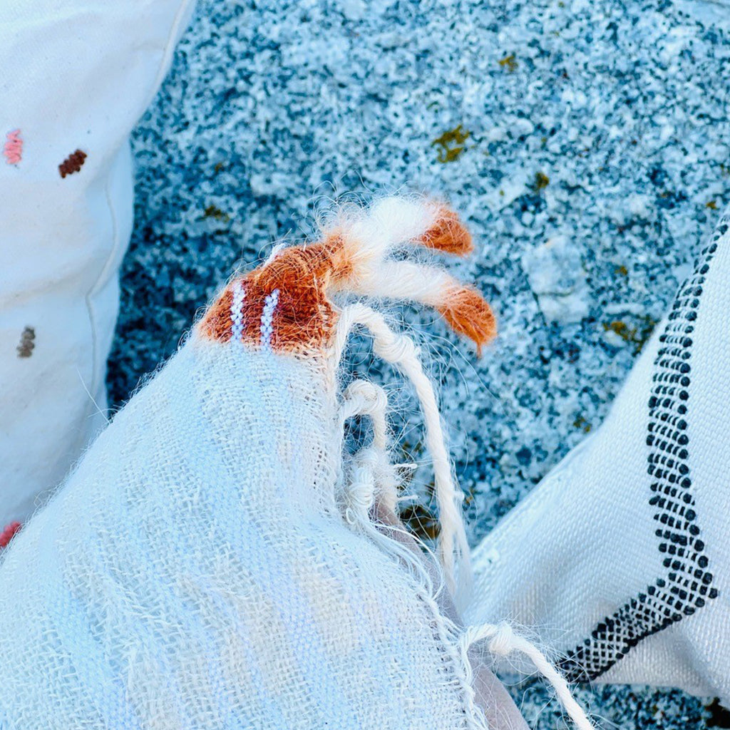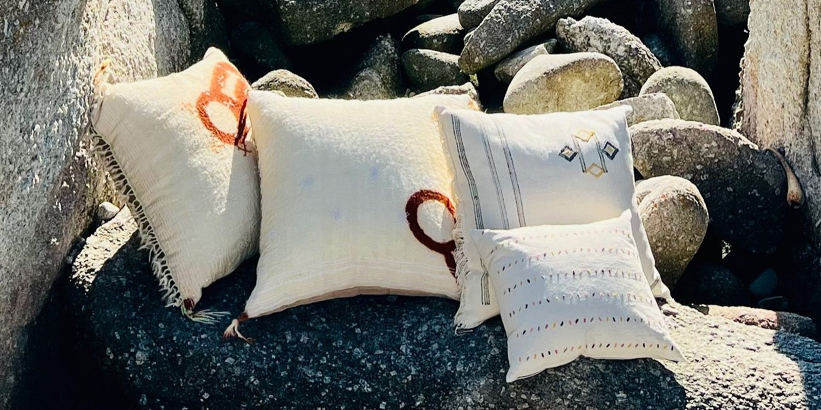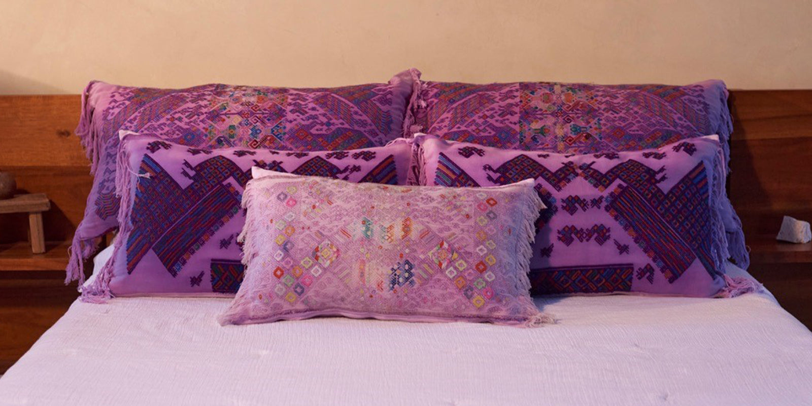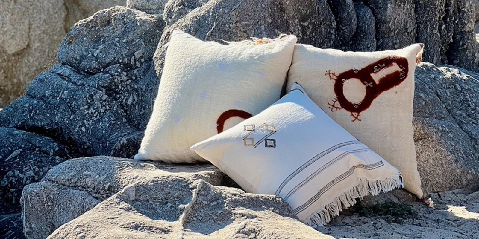 Au Fil Du Jour pillows are designed from ethically sourced fabrics from around the globe. Each pillow features handmade patterns and meticulous craft from regional artisans.